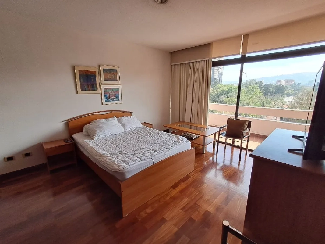 Apartamento totalmente AMUEBLADO Y EQUIPADO en zona 14 94 mts + 1 parqueo sala, comedor, baño visitas, dormitorio a