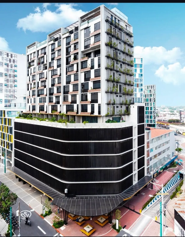 Renta: Q7,300 Incluye línea blanca y mantenimiento Medidas: • Apartamento: 65.40 m² • Parqueos tándem: 14 m² • Bode