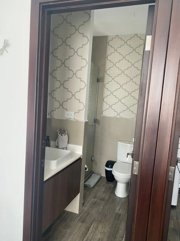 El apartamento cuenta con 87m2, distribuidos en sala, comedor, cocina, balcón, lavandería, dormitorio principal con baño privado y un dormitorio secundario con baño externo completo y un estacionamiento (posibilidad de parqueo extra por valor adicional)