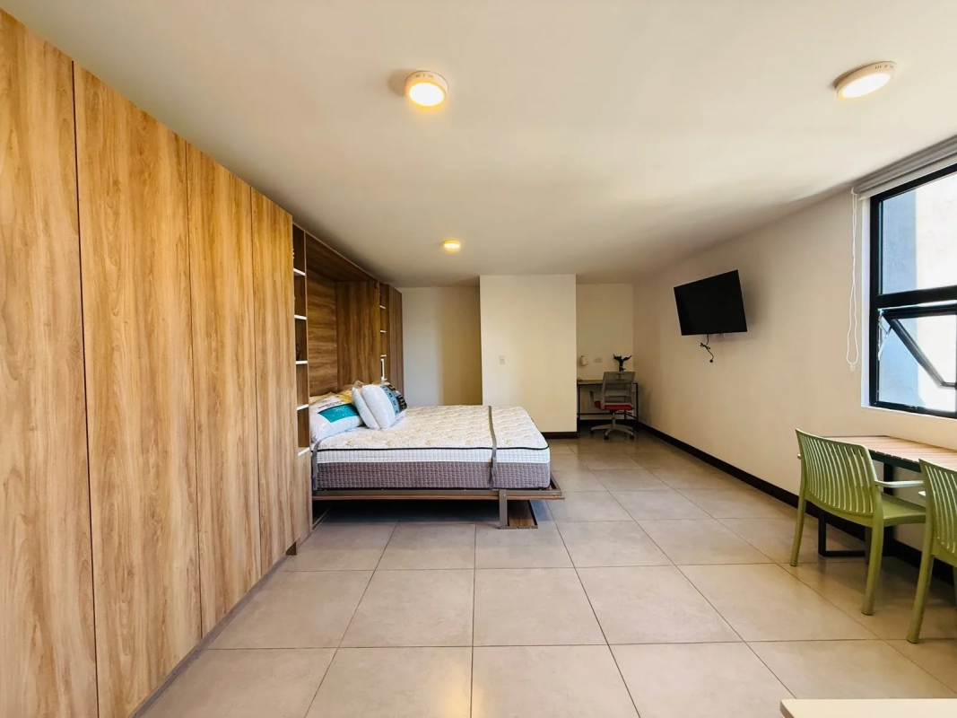 Equipado y amueblado Ubicado en nivel alto 44 m2 + 1 parqueo (ambientes separados) 1 habitación con espacioso close