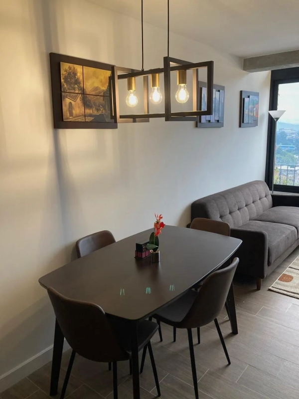 Cuenta con: 58mt2 de construcción, sala, comedor, cocina equipada, área de lavandería equipada, 1 baño completo, 2 dormitorios y 2 parqueos (tándem).
