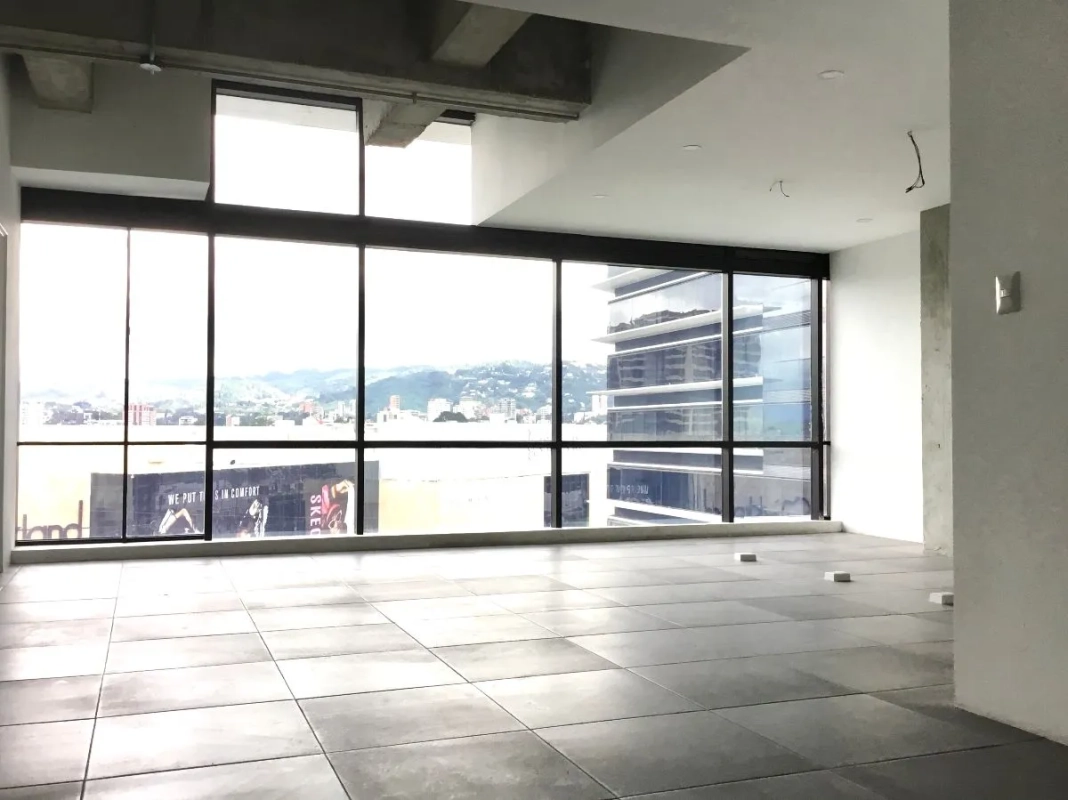 Vendo oficina para estrenar, con excelente ubicación en zona 10, cerca de transporte público, centros comerciales y espacios comunales que maximizan la utilización del espacio de oficina privada. El edificio cuenta con salas de reuniones, terraza con área de comedor para los colaboradores, locales comerciales, estacionamiento de visitas para automóviles y motocicletas, varios accesos que facilitan la movilidad hacia y desde el edificio.