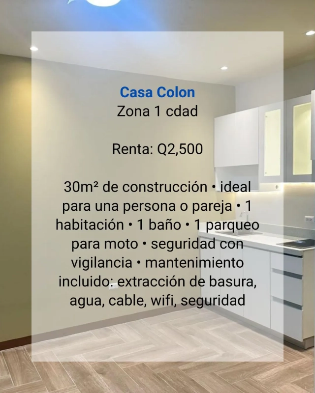 Apartamento en Renta en Casa Colon zona 1 cdad • Q2,500