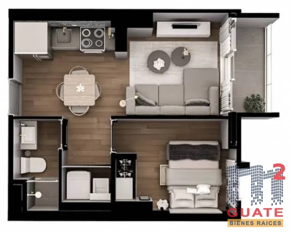 Apartamento para estrenar con una habitación, un baño y un parqueo. Línea blanca, sistema alexa integrado y cortinas blackout