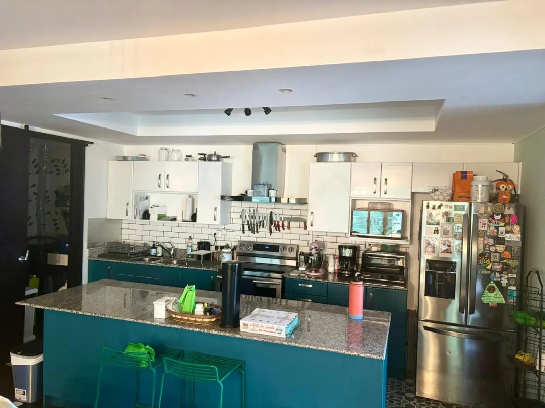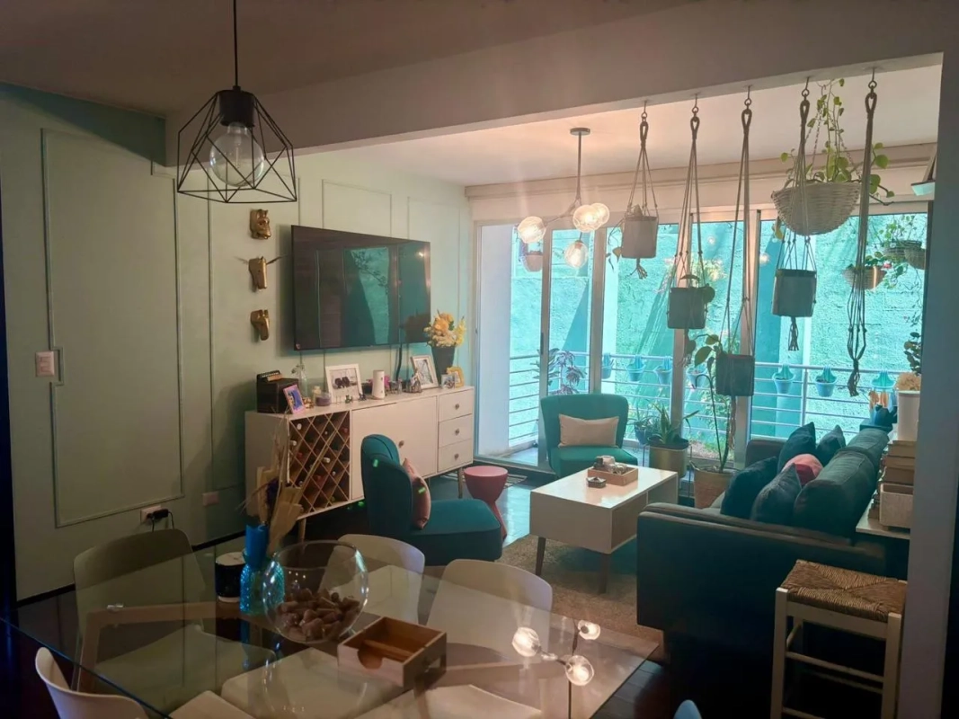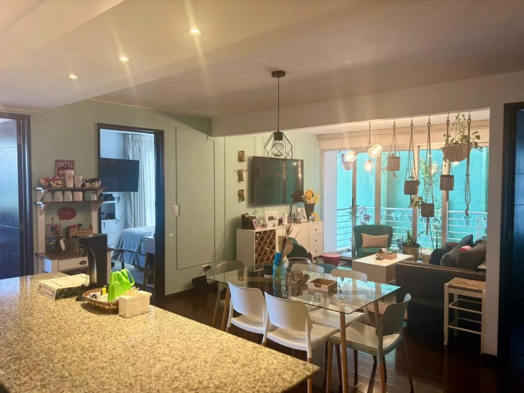 Sala, comedor y cocina amplia