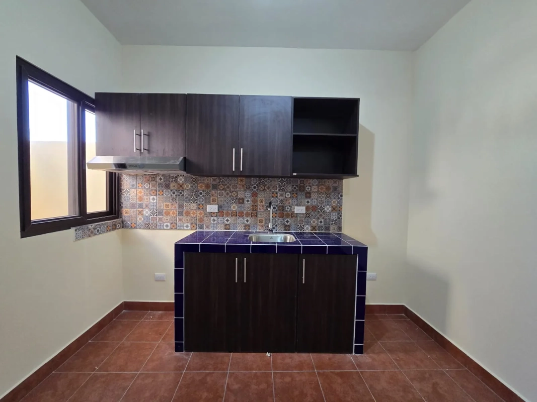 Acabados: Cocina con azulejo y gabinetes de melamina, piso cerámico, ventanería con marco de aluminio y vidrio, puertas de metal, closet de melamina, zócalo de piso.