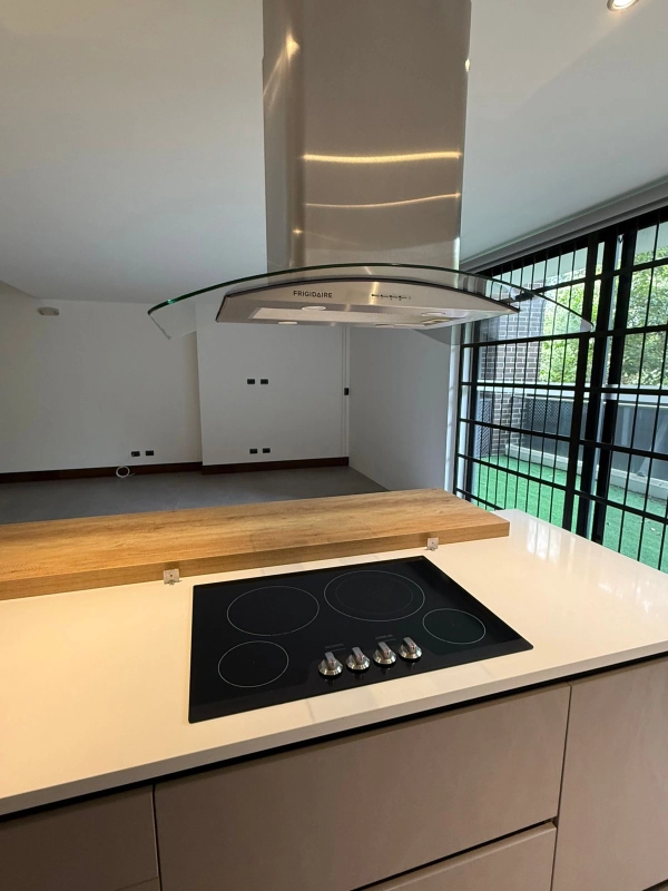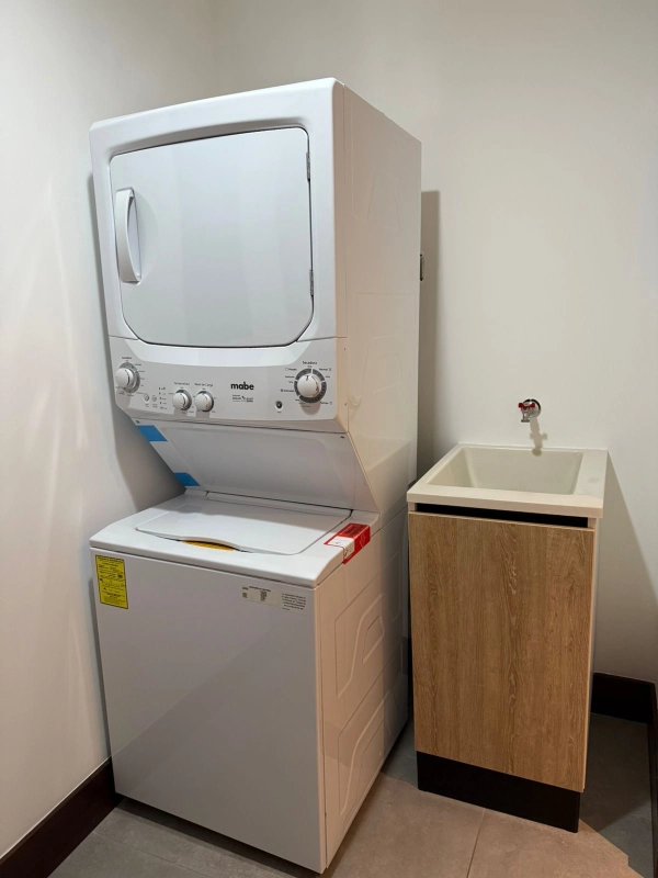 Línea blanca (refri, estufa eléctrica, horno, microondas, lavaplatos, lavadora y secadora de ropa en torre , aire acondicionado en los 2 dormitorios)