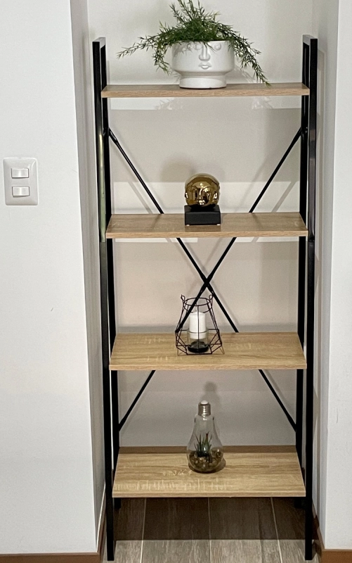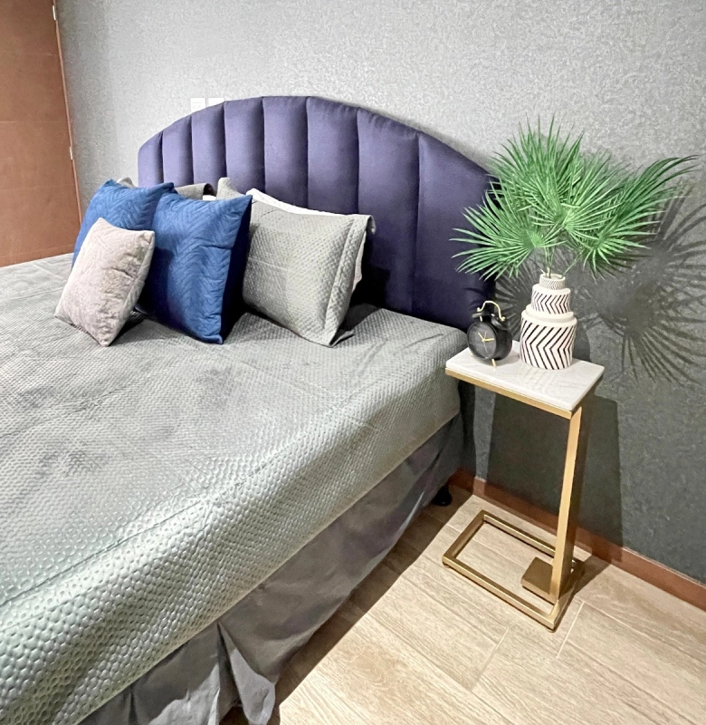 1 baño (Incluye espejo con luz). Puertas de vidrio tipo mampara.