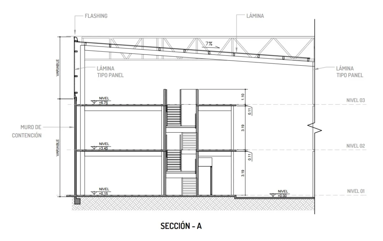 Oficinas: 188 m2 distribuidos en 3 niveles de 62 m2 por nivel.