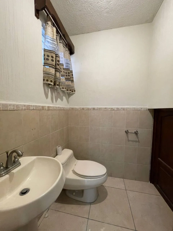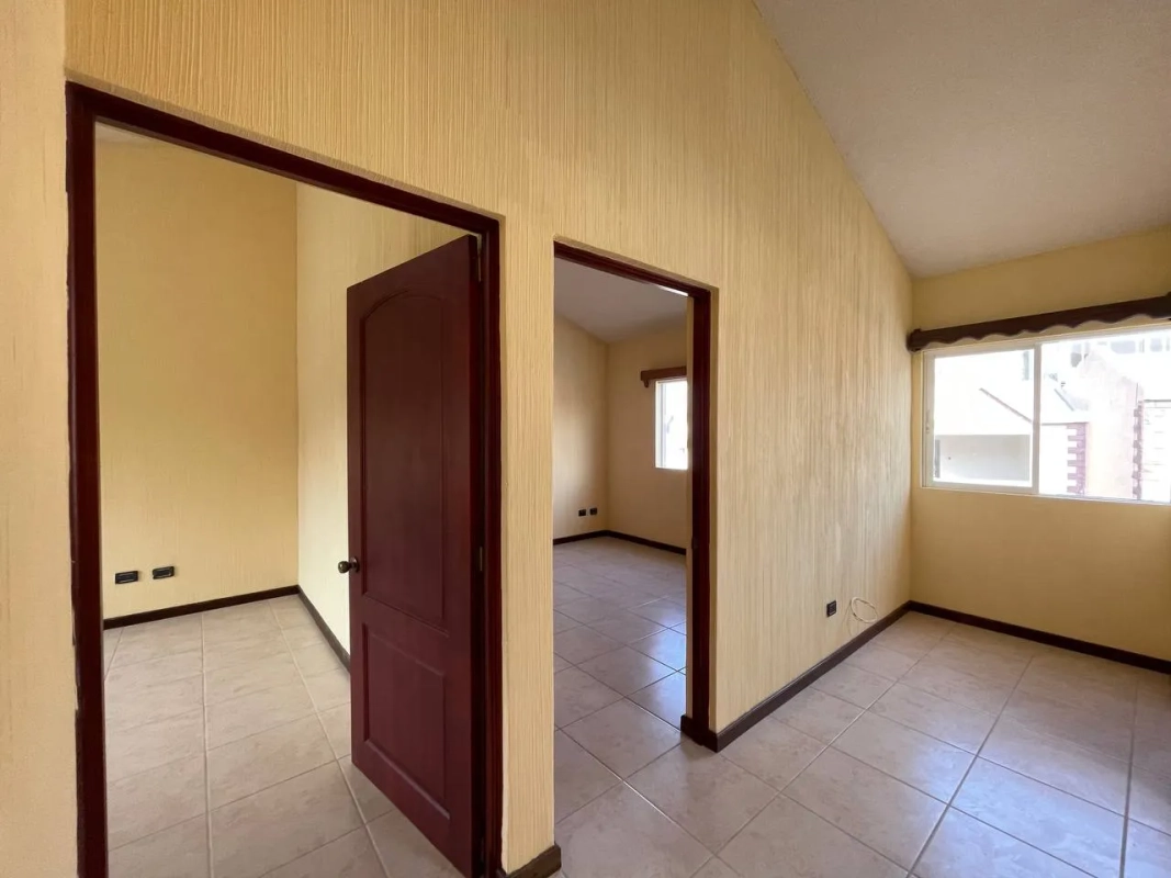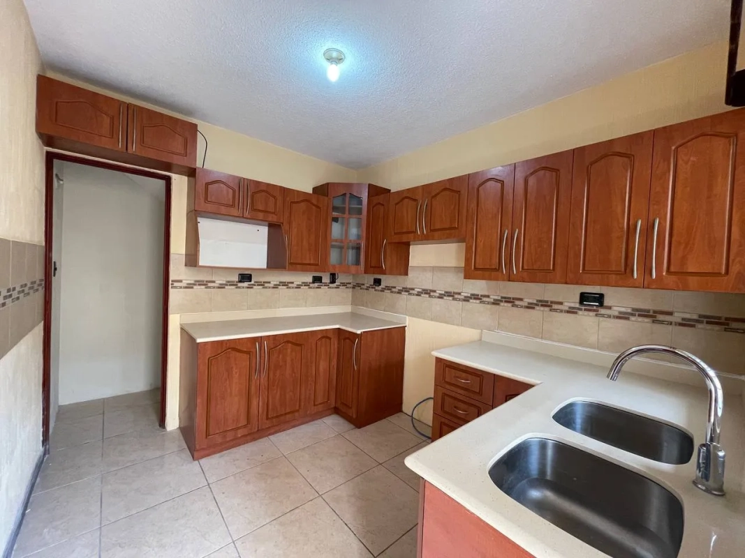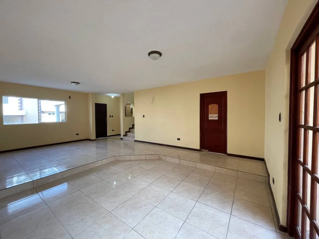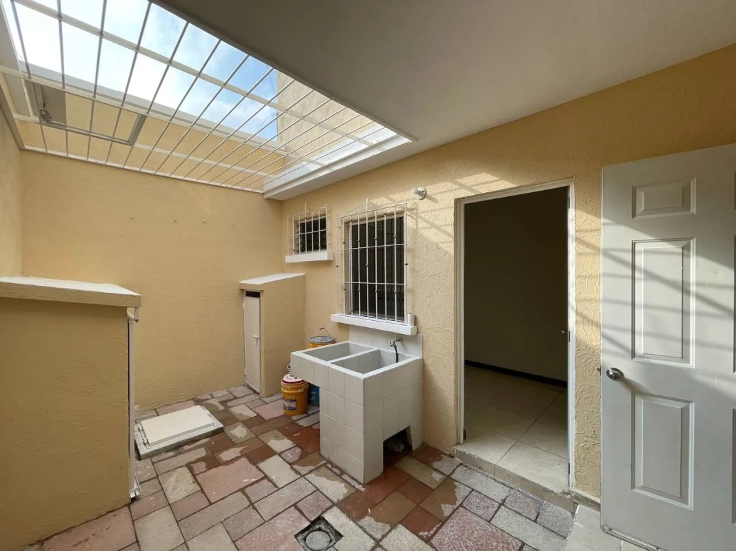 Sala, comedor, cocina con gabinetes y top de cuarzo, medio baño de visitas, área de lavandería, cuarto de servicio con baño completo, patio de interior con fuente y 2 parqueos (1 techado)
