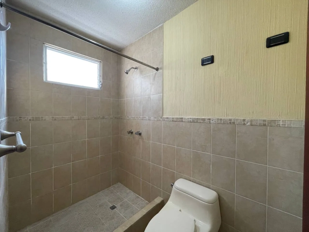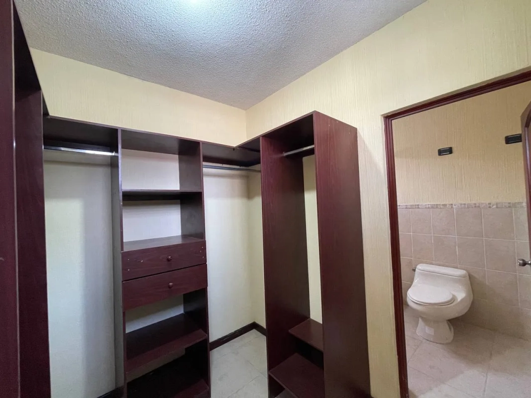 Dormitorio principal con walking closet y baño completo, 2dormitorios secundarios con closet cada uno y baño completo compartido.
