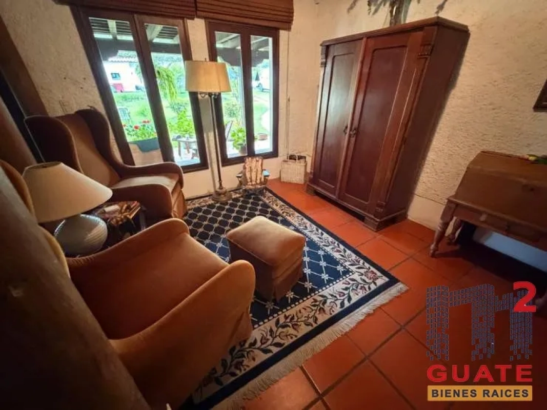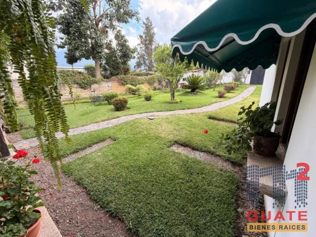 Casa de un nivel con 4 habitaciones totalmente amueblada y amplio jardín. Ubicada en condominio a minutos del casco de Antigua Guatemala