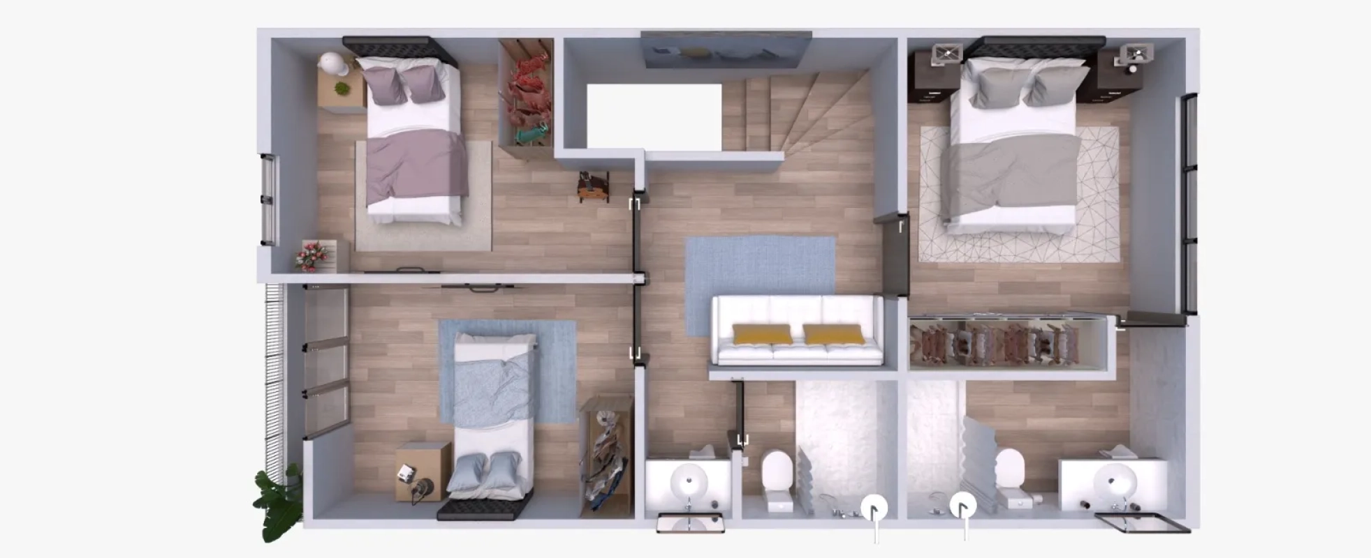 – 2 dormitorios secundarios