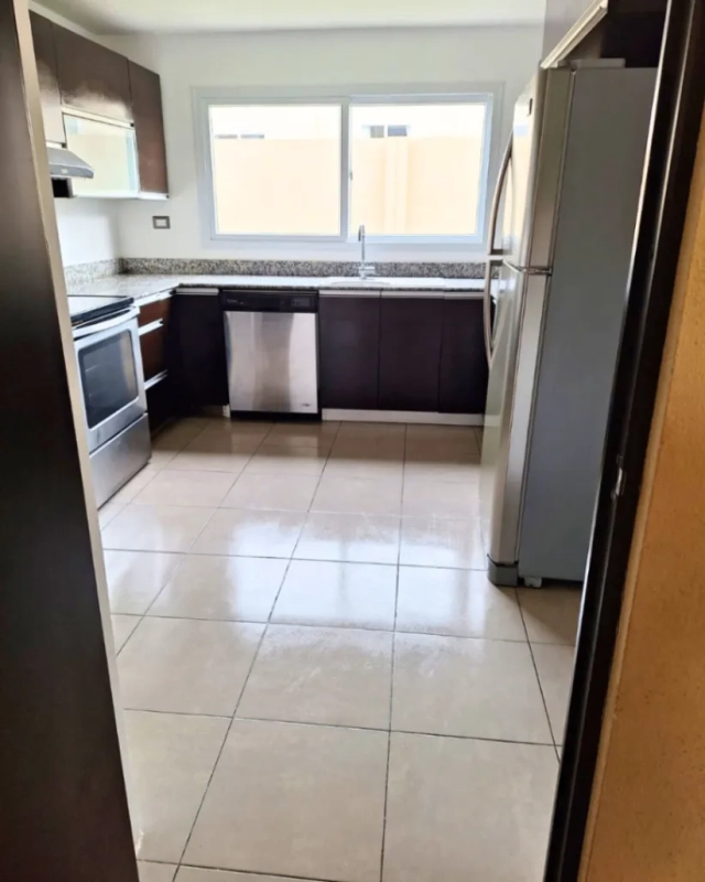 1 Dormitorio Master con walk in Closet, 2 habitaciones secundarias con closet, 3 Baños, balcón, 2 Parqueos techados con portón eléctrico, Sala, Comedor, Cocina, sala familiar, Habitación de Servicio completo, lavandería, jardín.