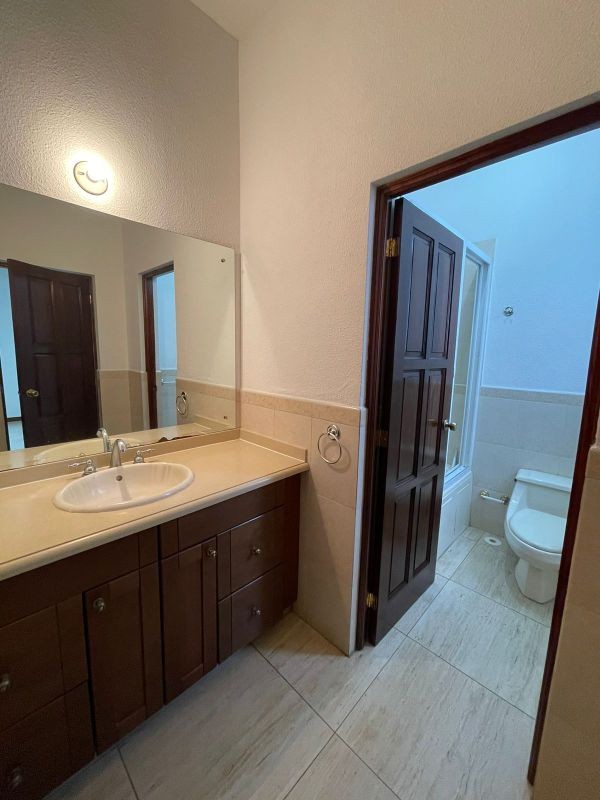 Nivel superior, sala familiar, dormitorio principal con walking closet y baño, dormitorio secundario con closet y baño y dos dormitorios secundarios con sus closets y baño compartido, la renta es de US$.2,600, monto que incluye renta mantenimiento e IVA