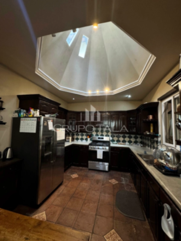 Cocina con cùpula y gabinetes de caoba