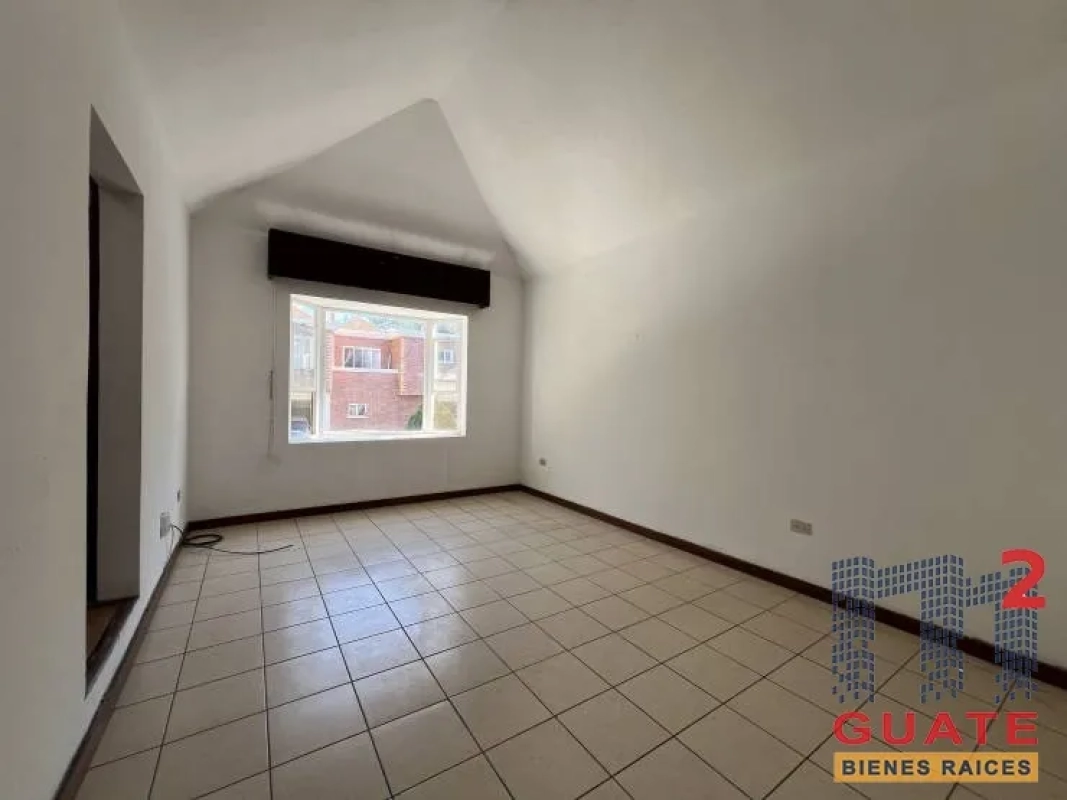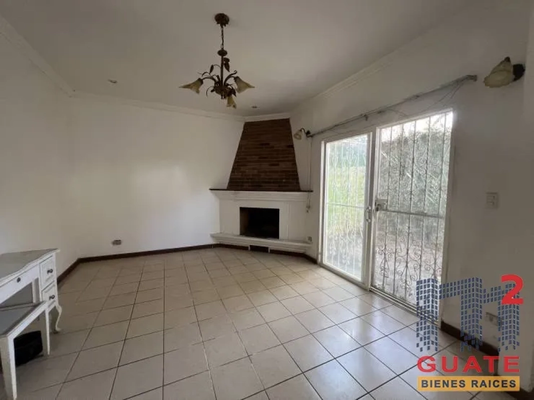 Casa de dos niveles en zona 16, ubicada dentro de condominio pequeño y seguro. 2 Niveles, cocina con gabinetes y desayunador, jardín, dormitorio de servicio, baño de visitas, chimenea, jardín, garaje para 4 vahículos. En segundo nivel se encuentra un dormitorio con walking closet, baño completo con bañera, 3 dormitorios extra con closet, sala familiar Condominio posee área de juegos y garita.