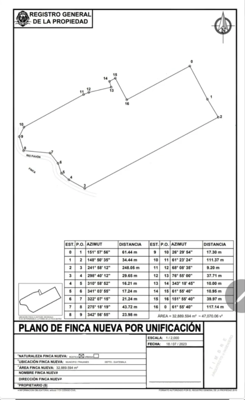 – Área del terreno: 47,070 v2 (32,889.59 m2)
