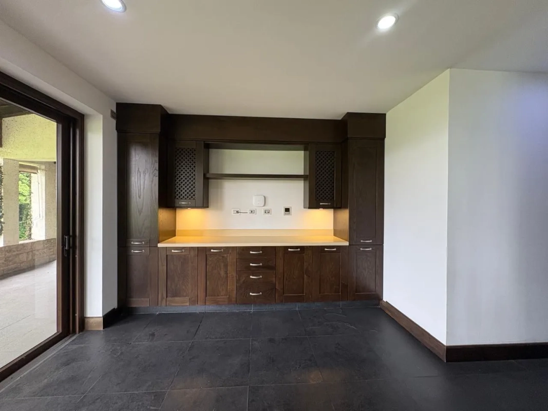 pérgola con sala y comedor, dos dormitorios con baño, sala familiar, garage para dos carros más.
