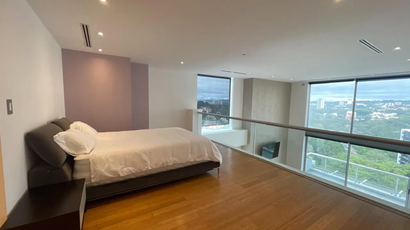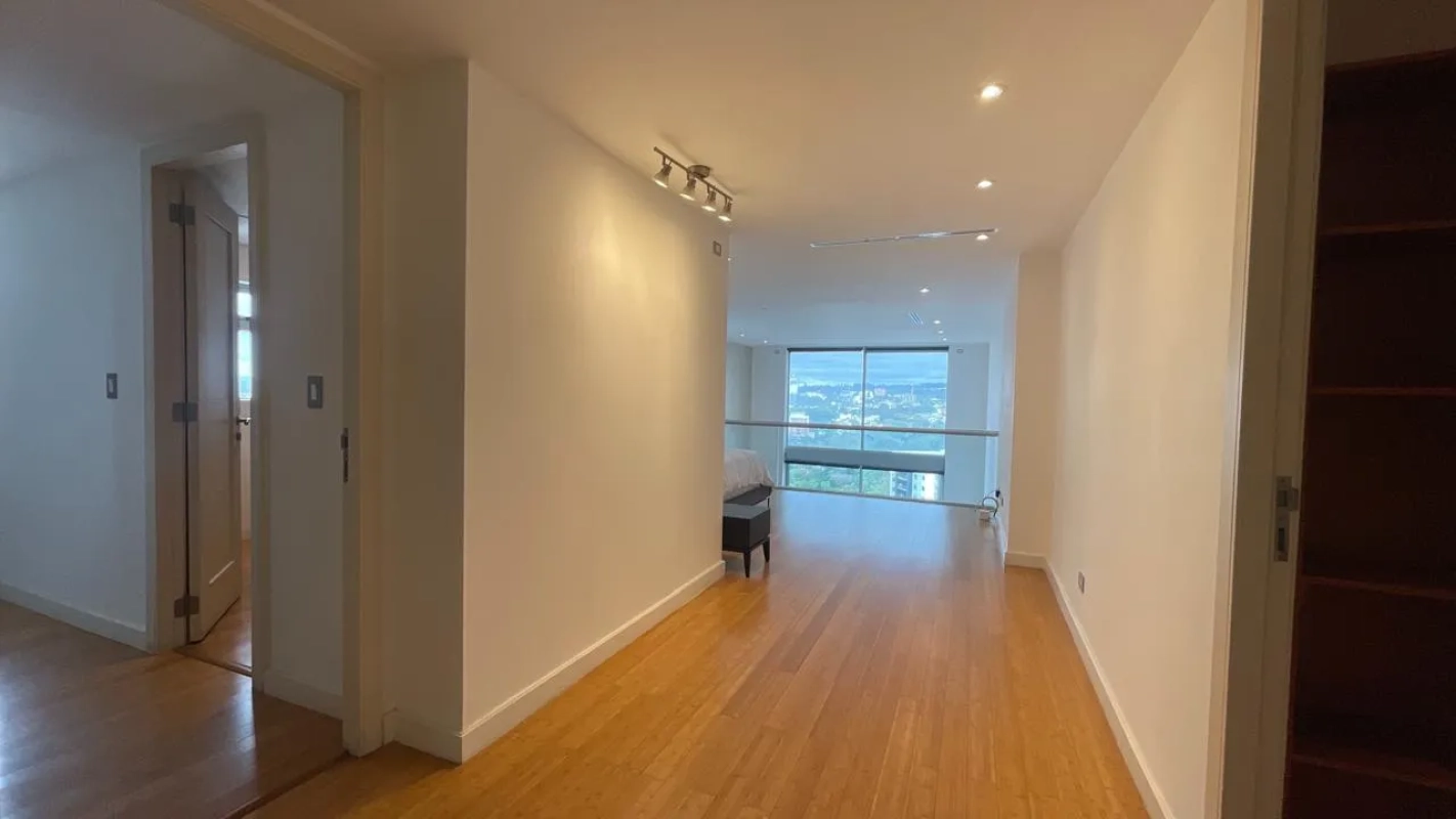 Cuenta con dos niveles, 3 habitaciones, 4 baños, walking clóset, dos balcones, sala, comedor, cocina con línea blanca, lavandería con baño de servicio, bodega, dos parqueos.