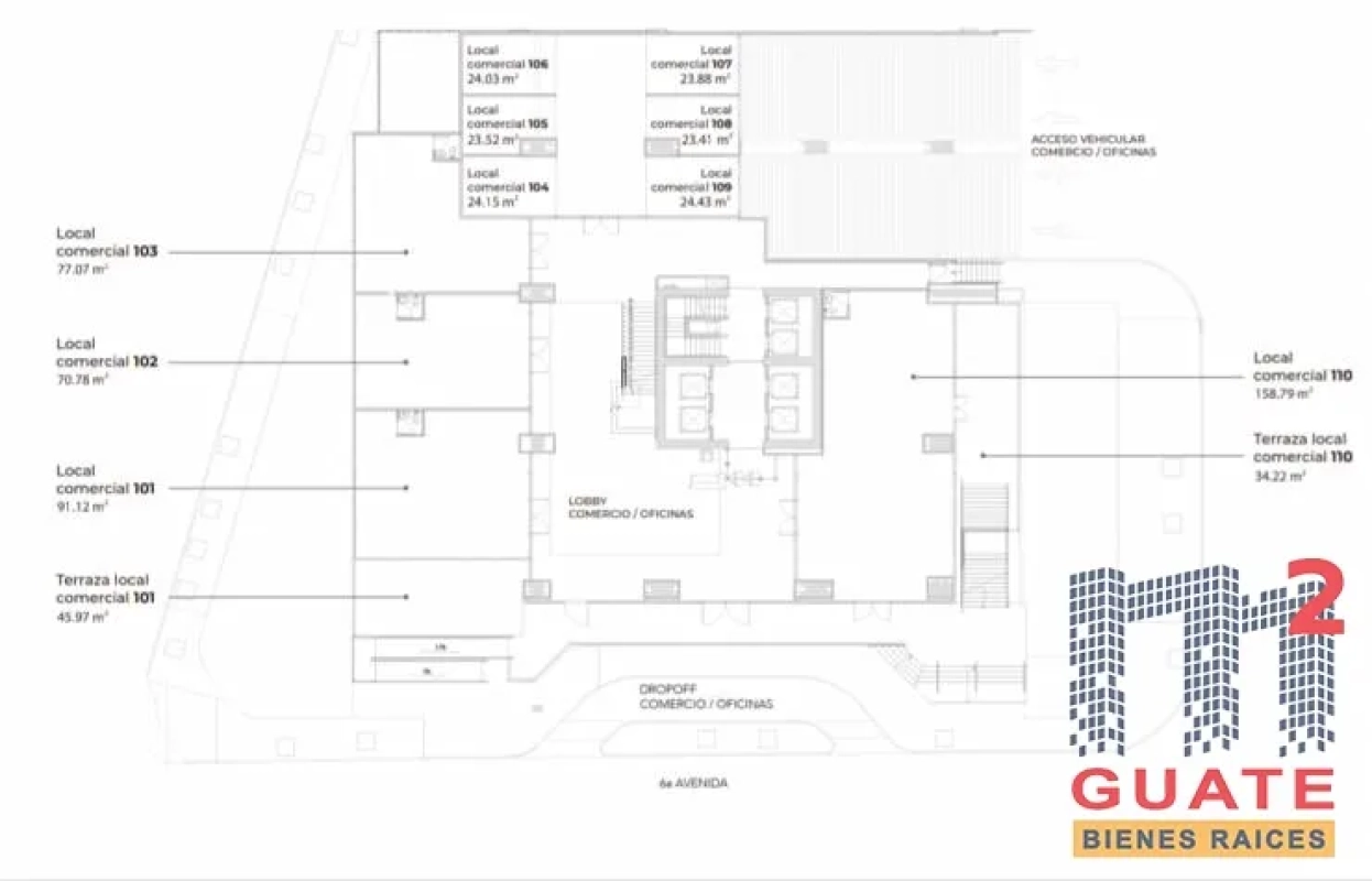 Local de esquina en primer nivel, Área Local: 91.12 m2 + Área Terraza 45.97 m2 = 137.09m2 excelente punto de z.10 edificio por aperturar pronto en la mejor área de la zona 10, tendrá kioscos y locales comerciales desde 25mts hasta 183 mts., distribuidos en 2 niveles de comercio dentro del proyecto VASANTA,135 apartamentos, 86 oficinas más conexión con el centro comercial plaza 10