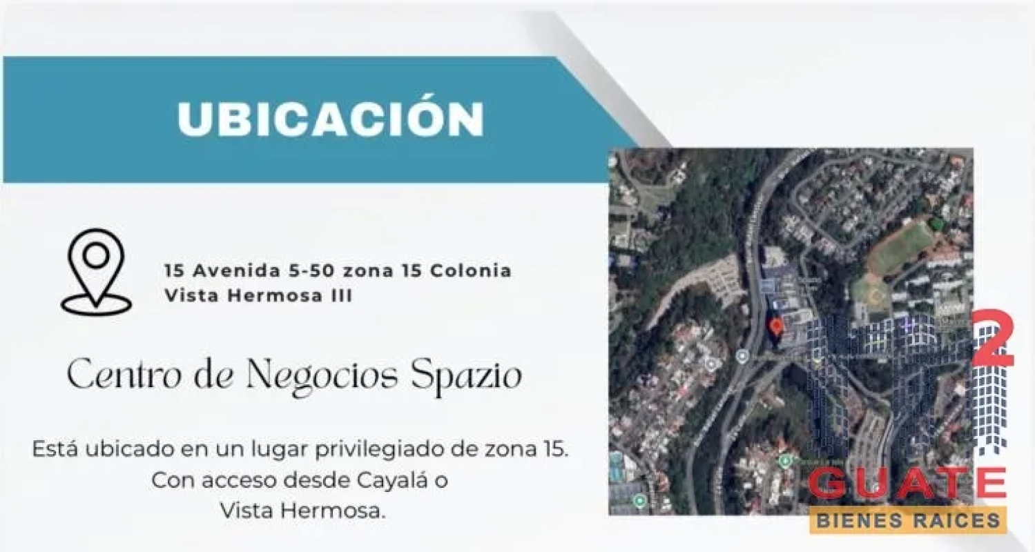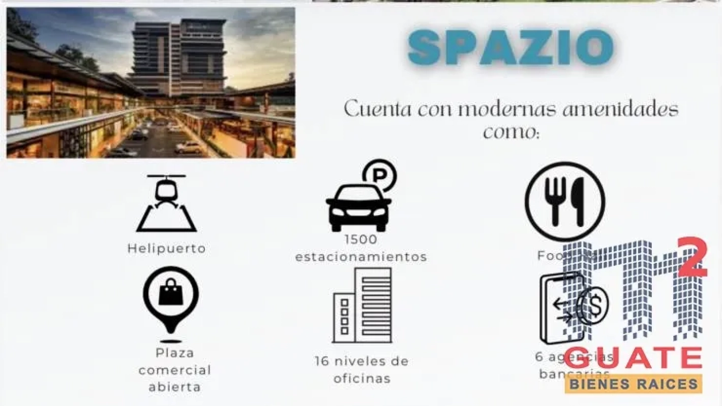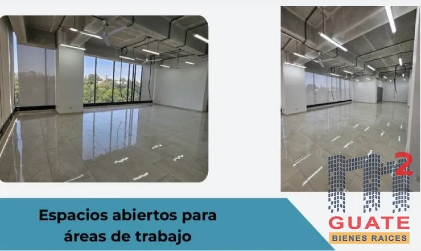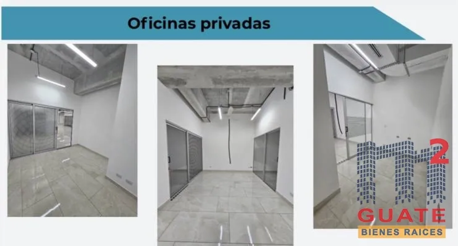 Oficina en renta , excelente punto de zona 15 , centro de negocios Spazio , se rentan dos oficinas juntas pero también se puede rentar por separado , el dueño puede hacer una división para que formen dos oficinas de ser necesarios, 274.88 metros cuadrados. (total ambas oficinas) 6 espacios de parqueos. Dos salas de reuniones alfombradas. Tres oficinas privadas. Persianas en toda la oficina. Aire acondicionado