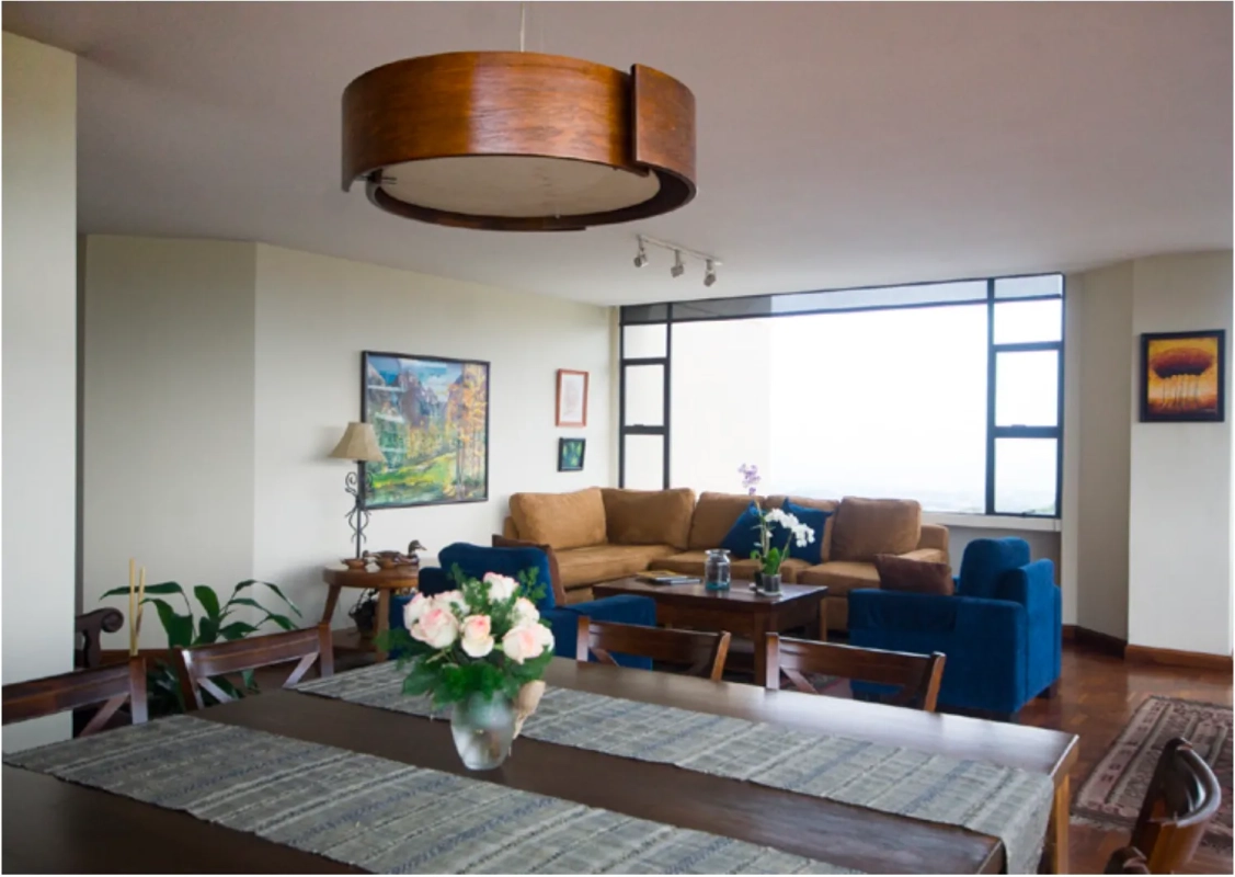 Sala-comedor con Linda vista a volcanes.