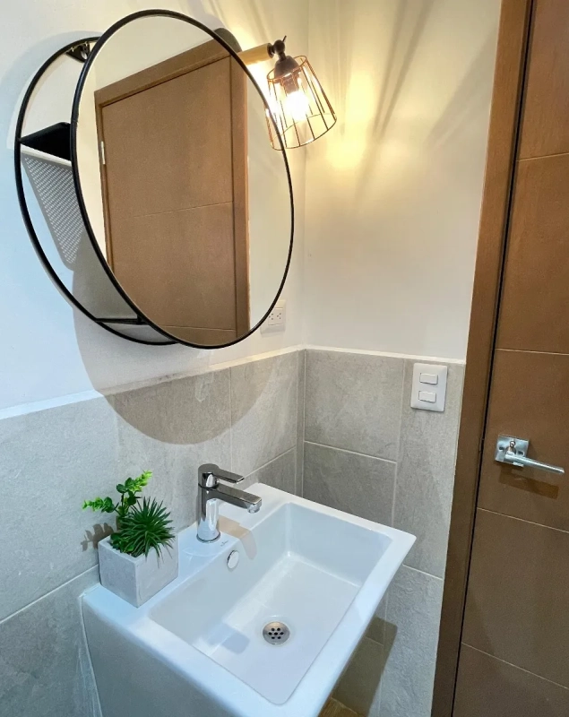 鈻笍 1 ba帽o (Incluye espejo con luz). Puertas de vidrio tipo mampara.