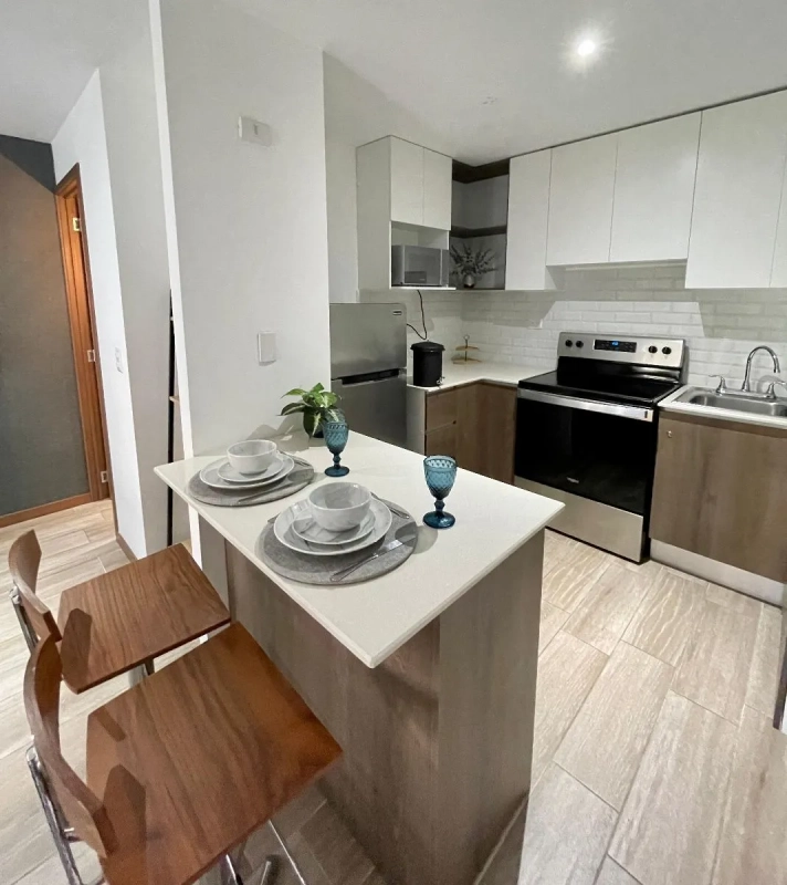 鈻笍Cocina con Refrigerador, Estufa, microondas, filtro para agua, cafetera.