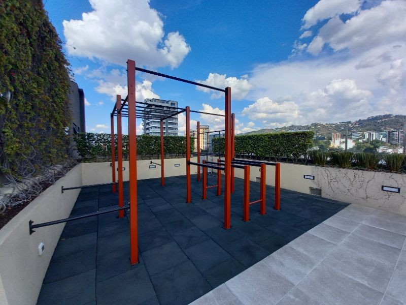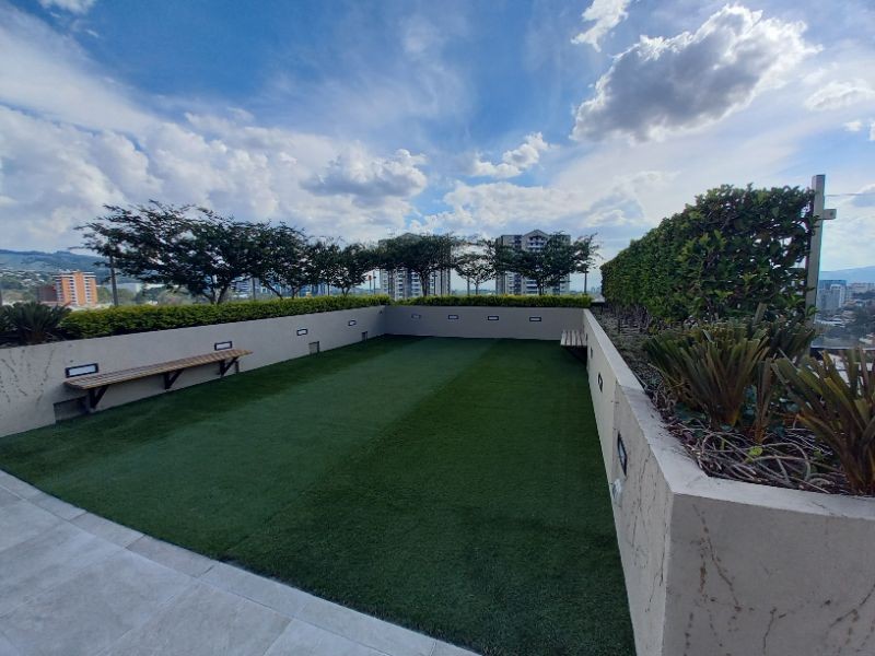 Edificio ubicado en Zona 15 VH2, cuenta con Area Social, 20 parqueos para visitas, cámaras de seguridad en áreas comunes, en cada nivel pila y baño de servicio para uso de todos, gimnasio, terraza c/Lounge. Area de Barbecue, jardín para mascotas y área de barras o calistenia, planta eléctrica para áreas comunes, wifi en áreas comunes.