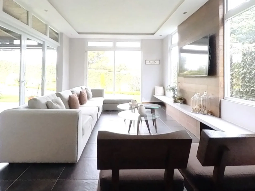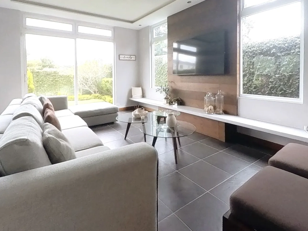 Cuenta con vestíbulo de ingreso, baño de visitas, estudio, 2 salas, comedor, cocina, pérgola con cocina y comedor exterior, sala familiar, dormitorio principal con walk-in closet y baño, tres habitaciones secundarias, con baño cada una, lavandería, bodega, dormitorio de servicio , estacionamiento techado para 2 vehículos y hasta 4 vehículos adicionales. Incluye linea blanca completa, cortinas, cisterna y bomba de agua. El condominio cuenta con canchas de tenis, áreas deportivas, juegos infantiles, salón social y parqueo de visitas.
