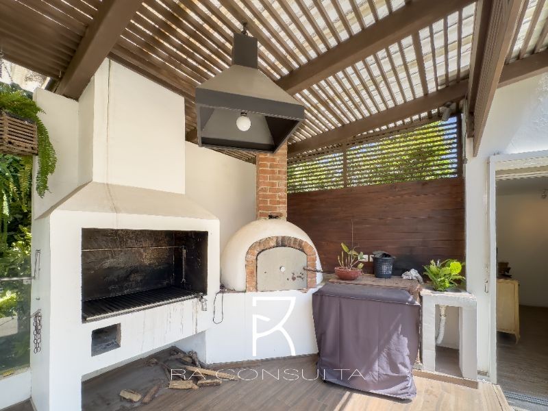 Pérgola con churrasquera, horno de leña, sala, comedor con Vista al Bosque con cortinas de exterior eléctricas