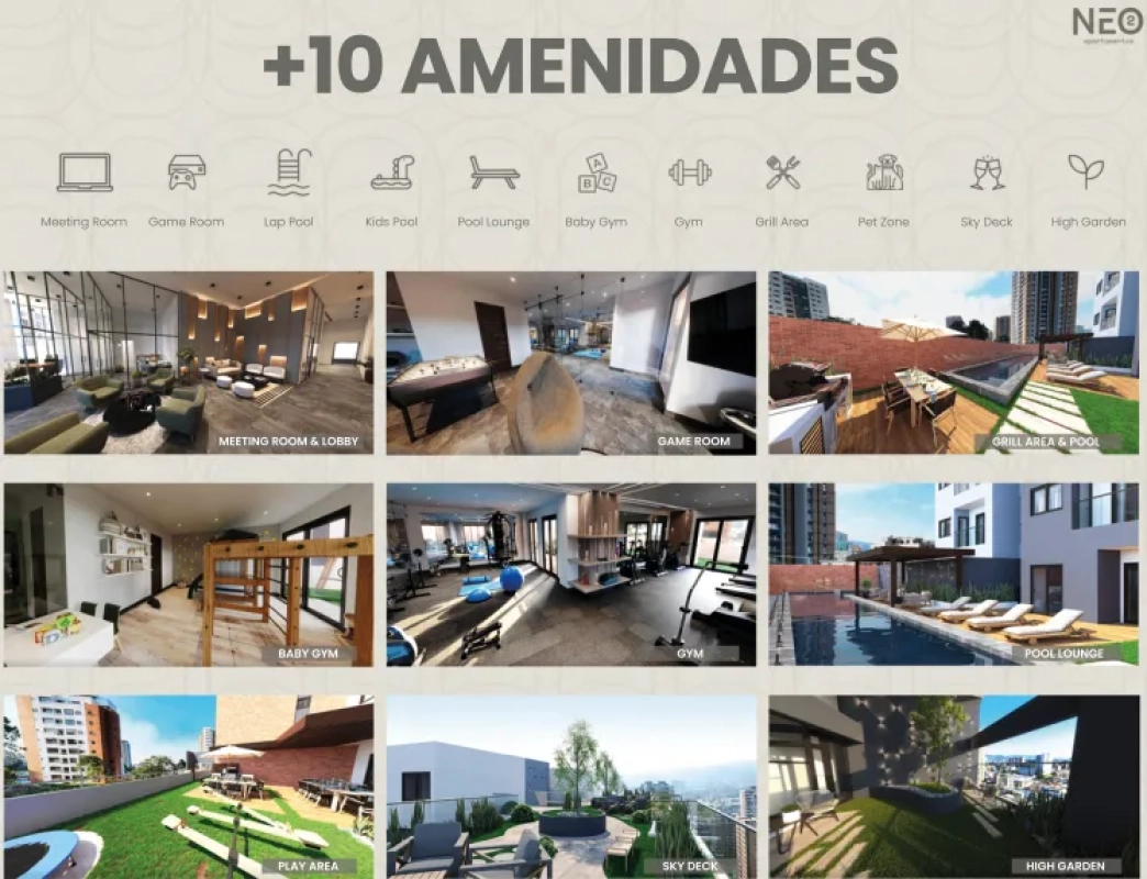 Edificio cuenta con parqueo de visitas, business center, jardines internos, gimnasio, salón social, área de juegos infantiles, baby gym, piscina, game room, área de mascotas, sky lounge.