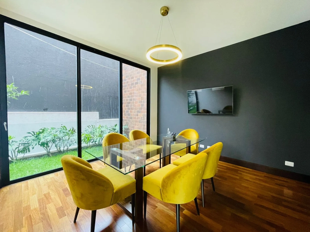 Cuenta con: 213.63mt2 de construcción + 3 parqueos + bodega de 5.05mt2, baño de visitas, sala, comedor, cocina equipada, amplio balcón con jardín, área para bar, área de lavandería, dormitorio de servicio, sala familiar con balcón y pequeño jardín, 3 dormitorios y 3.5 baños.