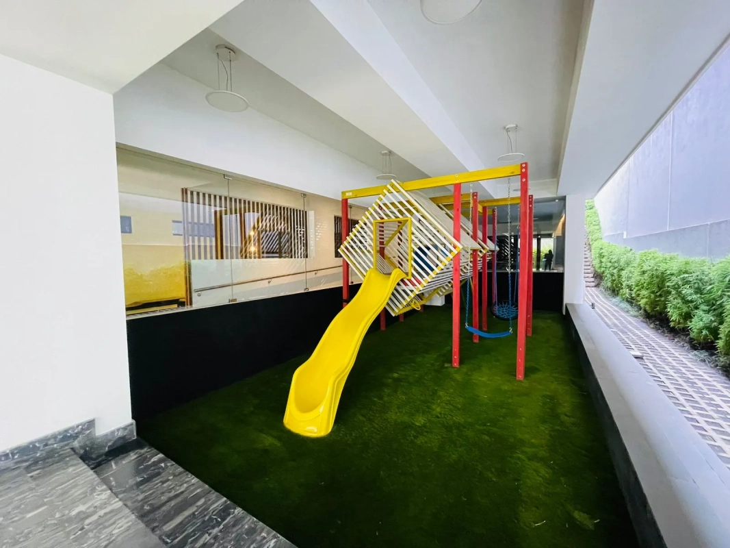 Edificio cuenta con parqueo de visitas, lobby con recepción, sala de espera, business center, área de masajes, área para mascotas, jardín con juegos infantiles, gimnasio con spa, sauna, piscina techada y climatizada, salón social, sky lounge, fire pits, huerto de hierbas y churrasqueras.