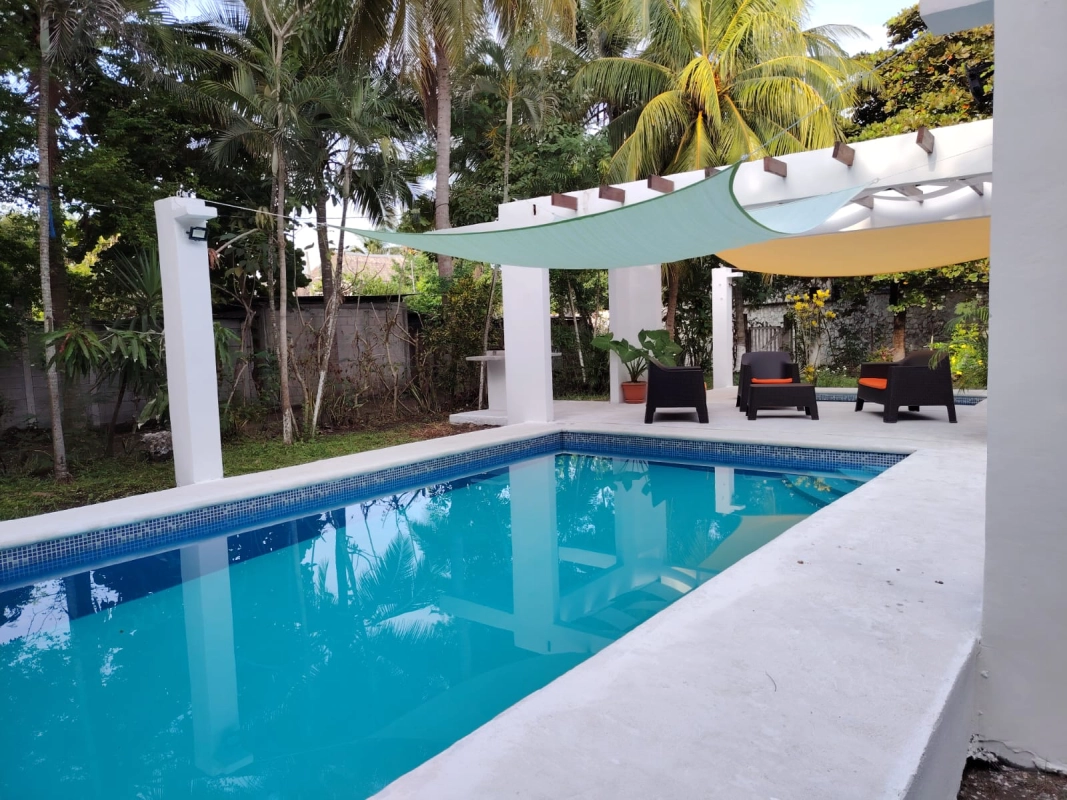 Área de piscina con hamacas
