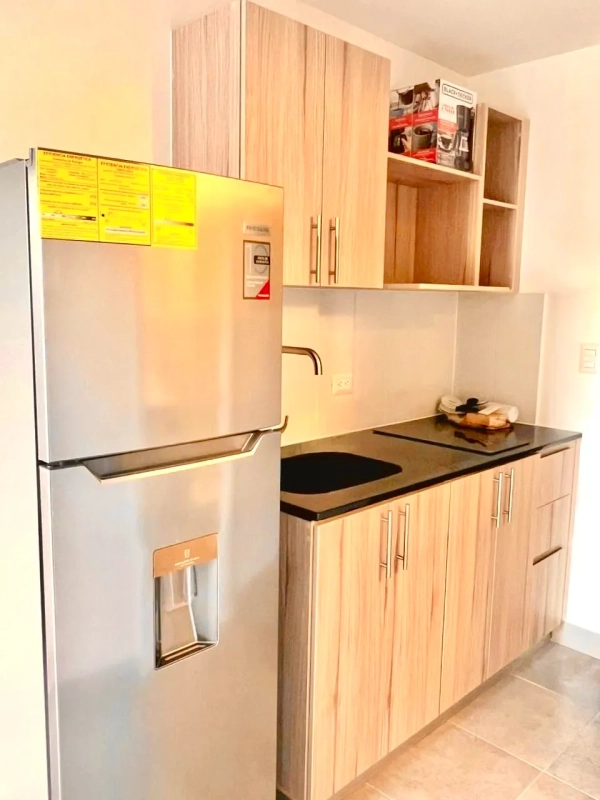 •Refrigerador •Top eléctrico (2 hornillas) •Horno microondas •Horno tostador