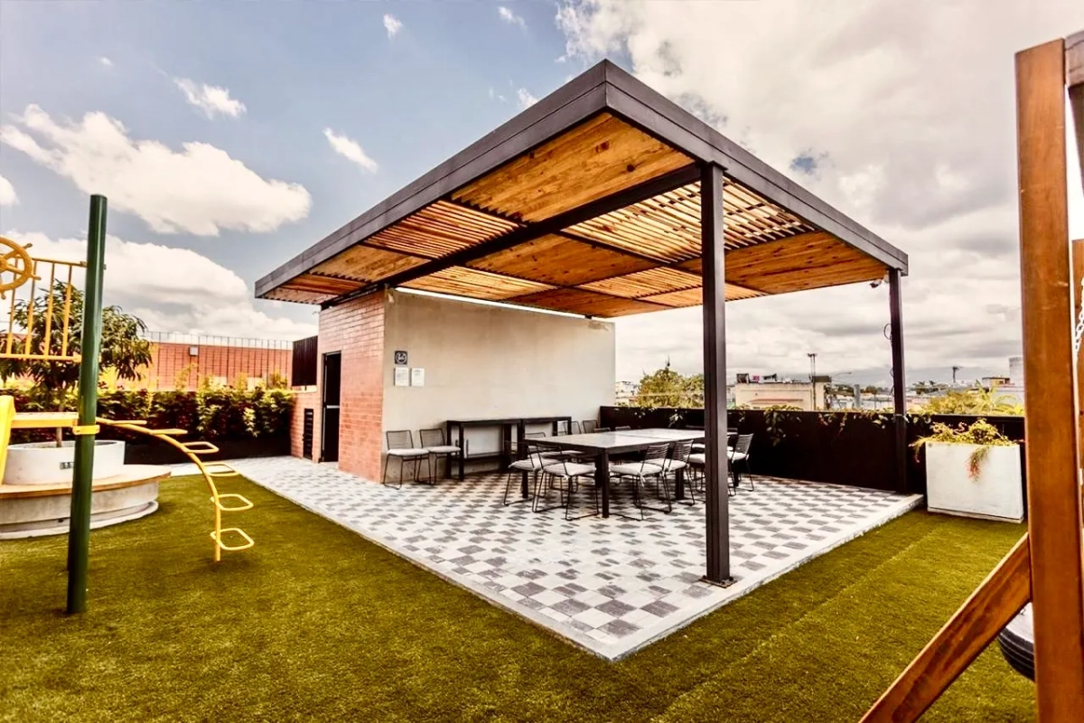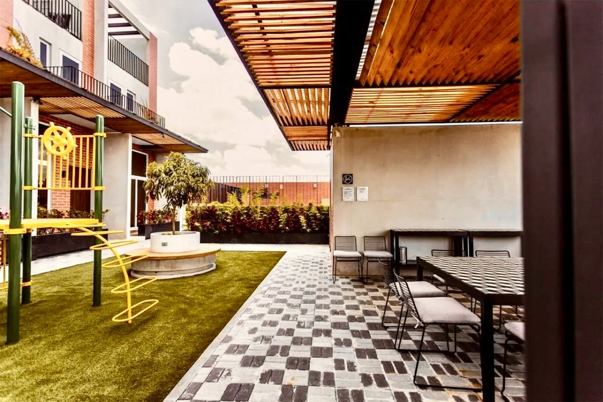 •Plaza comercial •Gimnasio •Área social •Coworking •Lavandería común •Área de BBQ •Piscina